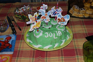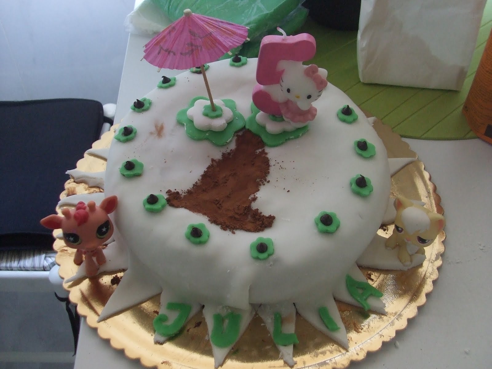Então foi assim uma coisa simples. Eu e a filhota a consultar o site para ver o que comprar para os amiguinhos e o bolo foi assim uma coisa .... vá, meio arranjada à pressa porque a criança não se decidia qual era o bolo que queria ... e por isso foi mesmo o mais simples possível: